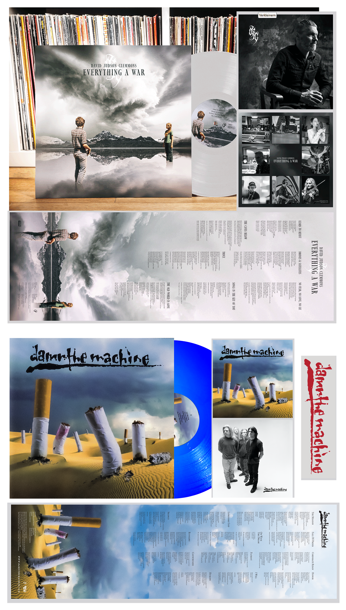 both LPs include fold out lyric posters & Inserts, DTM has the sticker too! Remember to choose your color option for the Debut Vinyl with the pulldown menu below